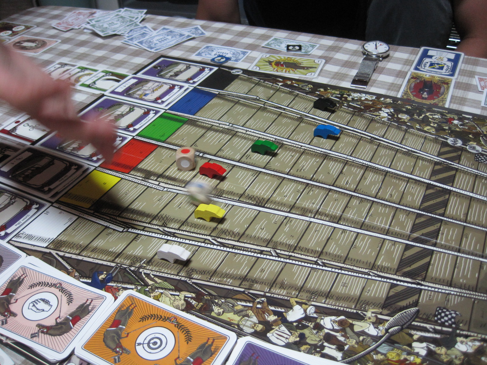 しかし、競馬で賭けをしてお金と勝利点を稼ぐゲームなのですが